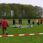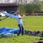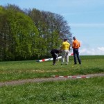 Entsprechend gelassen ging es in den Zeitflug. Allerdings war es gar nicht immer so leicht die Zeit zu schaffen, aber das größere Spektakel boten die Landeanflüge. Unterhalb von 20 Metern war es so turbulent, dass es die Modelle ordentlich beutelte. Wer darauf nach dem gemütlichen Thermikkreisen nicht eingestellt war, erlebte einen Eiertanz. Deshalb gab es einige unsanfte Landungen. Das Maßband zum Bestimmen der Landepunkte wurde von vielen kräftig langgezogen, was aber nicht immer half.