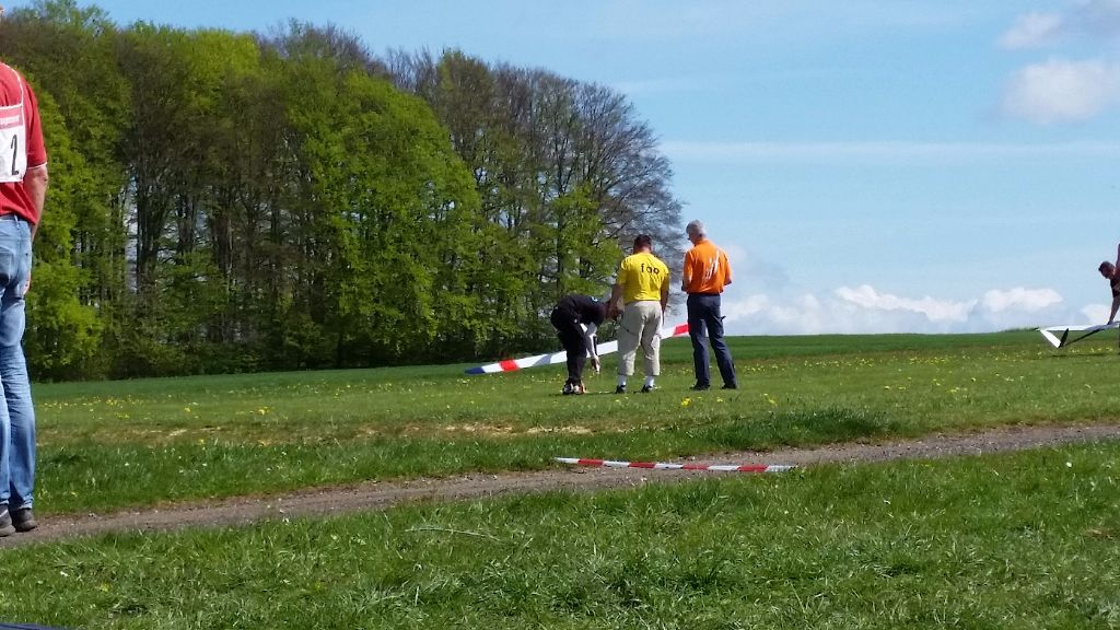 Entsprechend gelassen ging es in den Zeitflug. Allerdings war es gar nicht immer so leicht die Zeit zu schaffen, aber das größere Spektakel boten die Landeanflüge. Unterhalb von 20 Metern war es so turbulent, dass es die Modelle ordentlich beutelte. Wer darauf nach dem gemütlichen Thermikkreisen nicht eingestellt war, erlebte einen Eiertanz. Deshalb gab es einige unsanfte Landungen. Das Maßband zum Bestimmen der Landepunkte wurde von vielen kräftig langgezogen, was aber nicht immer half.